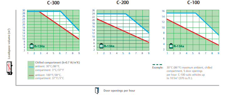 The C-Series Thermo King refrigeration units are cooling systems with vehicle engine driven compressors designed for fresh applications on small truck and vans.